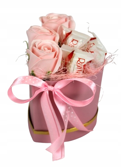 Bukiet wykonany w flower boxie, z wysokiej jakości kwiatów mydlanych.